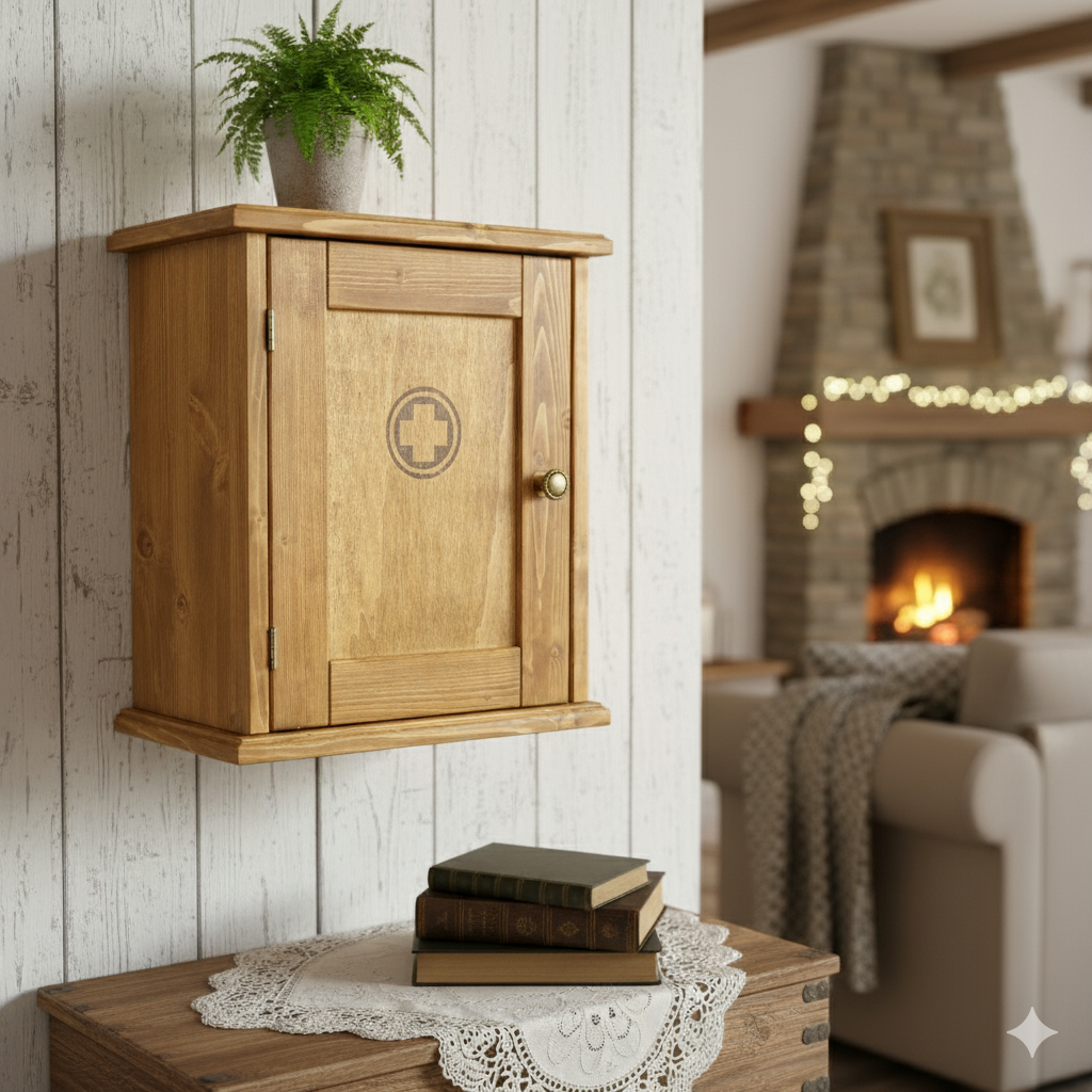 Tato dřevěná lékárnička na zavěšení je perfektní volbou pro organizaci léků a zdravotnických potřeb. Vyrobena z masivního dřeva, nabízí klasický přírodní vzhled, který se hodí do domácností či chalup s tradičním stylem. Lékárnička má uvnitř tři poličky pro přehledné uspořádání léků. Snadno se zavěšuje na stěnu, čímž šetří místo a přináší snadný přístup k zdravotnickým potřebám.