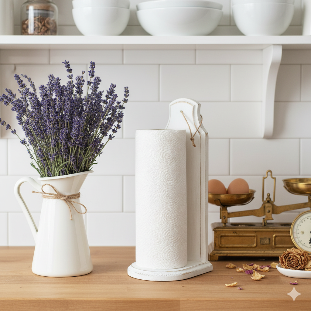 Tento dřevěný vintage stojan na papírové utěrky je ideální volbou pro ty, kteří hledají stylový a praktický doplněk do své kuchyně. Vyroben z kvalitního dřeva. Je pevný, stabilní a jeho design umožňuje snadnou manipulaci s papírovými utěrkami.