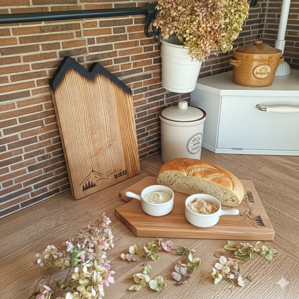 Toto moderní designové prkénko je inspirováno siluetou hor – jeho horní okraj je stylizován do tvaru horského hřebene a spodní část zdobí laserově gravírovaný obrázek Lysé hory, nejvyššího vrcholu Beskyd, doplněný poetickým nápisem "Dotkni se Beskyd".