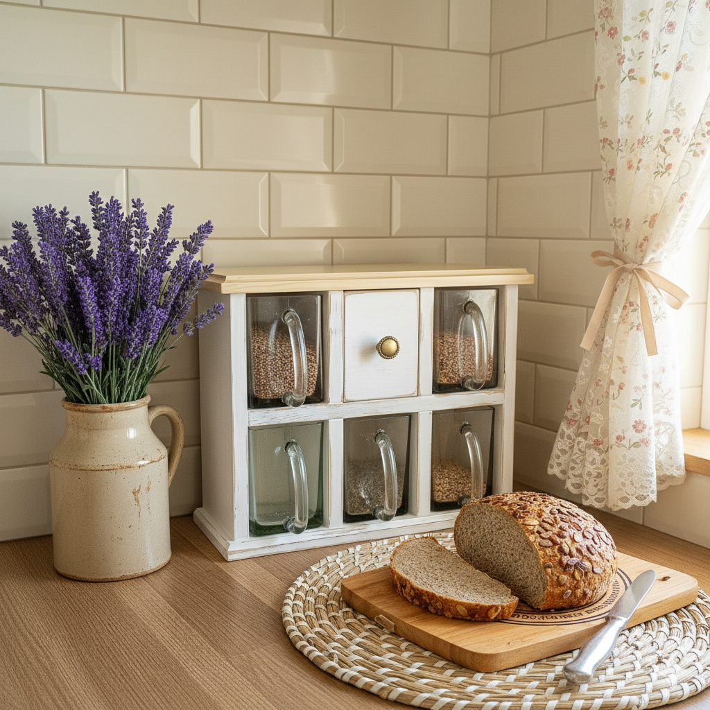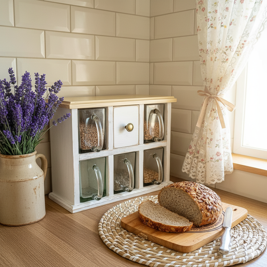Tento šarmantní úložný box vám pomůže udržet pořádek a zároveň dodá prostoru ten správný nádech vintage stylu. Už žádné poházené sáčky s kořením nebo nejednotné dózy!